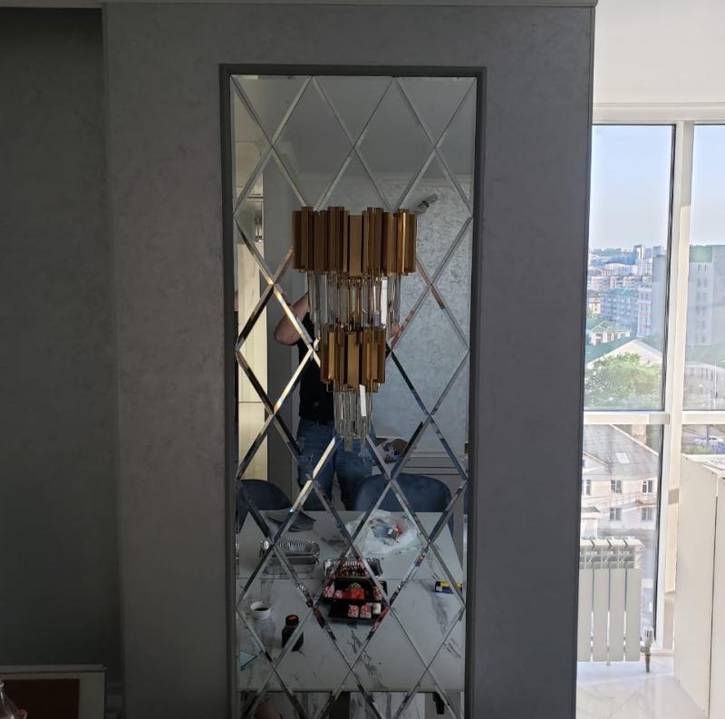 Использована серебряная зеркальная плитка «вытянутый ромб».